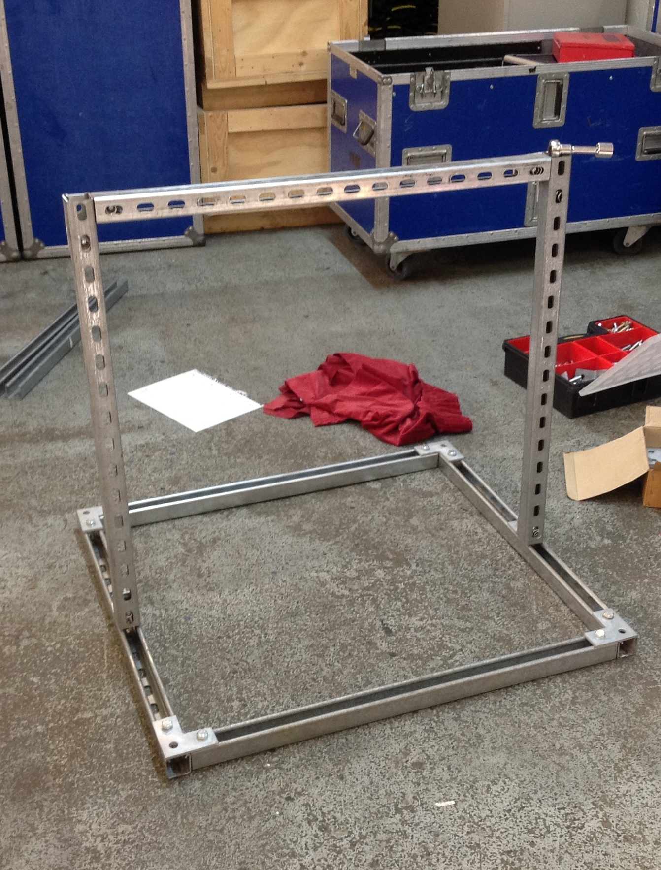 I am starting at the centre with the frame for the “Horse Gin” the bit the horse walk around. Having considered the matter I decided to make the frame from unistrut which if you have never seen it before is like meccano but for big boys and girls, used in the building industry to hold just about everything together. Normally I would use plain steel but as I have never seen a machine like this, and there is going to have to be a fair degree of experimentation and adjustment going on, so having a frame that can easily be adjusted will make it easier.