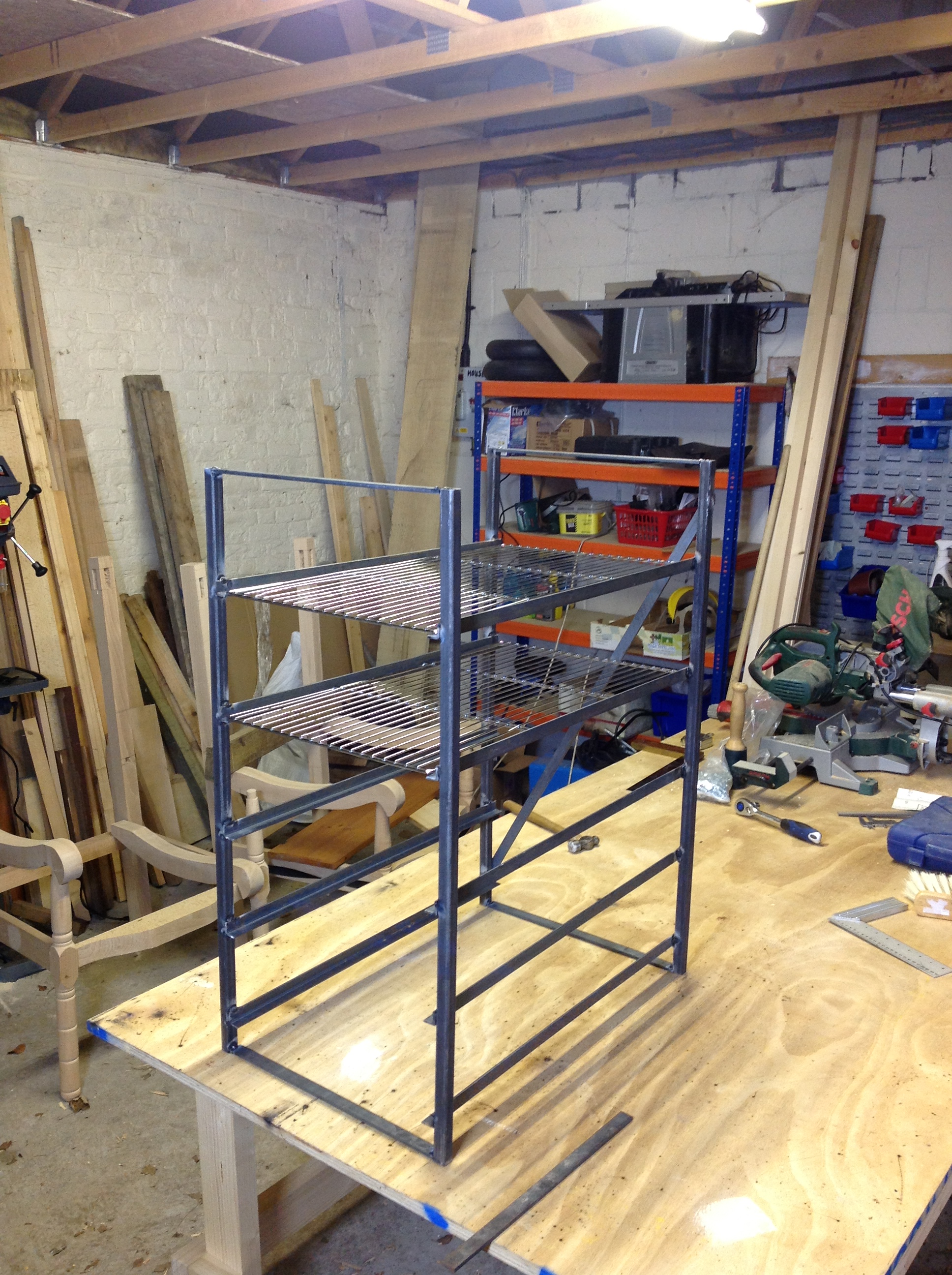 Therefore my project for the next few weekends is create a Quality Smoker in the garden at Heritage Towers. I am desperate to expand my repertoire and try smoking cheese in particular brie and cheddar, for which you need a cold smoker, but don’t want to give up Hot Smoked Turkey and Salmon. Therefore I have come up with a design that I think can do both hot and cold smoking although obviously not at the same time. In simple terms I am looking to make a brick enclosure with a door, inside which is a metal frame onto which you slide racks of food, which as you can see from the picture above is what I made this weekend, along with the concrete base for it all to stand on. Next weekend weather and family willing its time to be a brick layer, building the brick enclosure to put it all in. Sounds simple when you say it like that, but I have never built one before, never seen one, and will be making it up as I go along. Put in those terms it like that it sounds like a recipe for disaster.