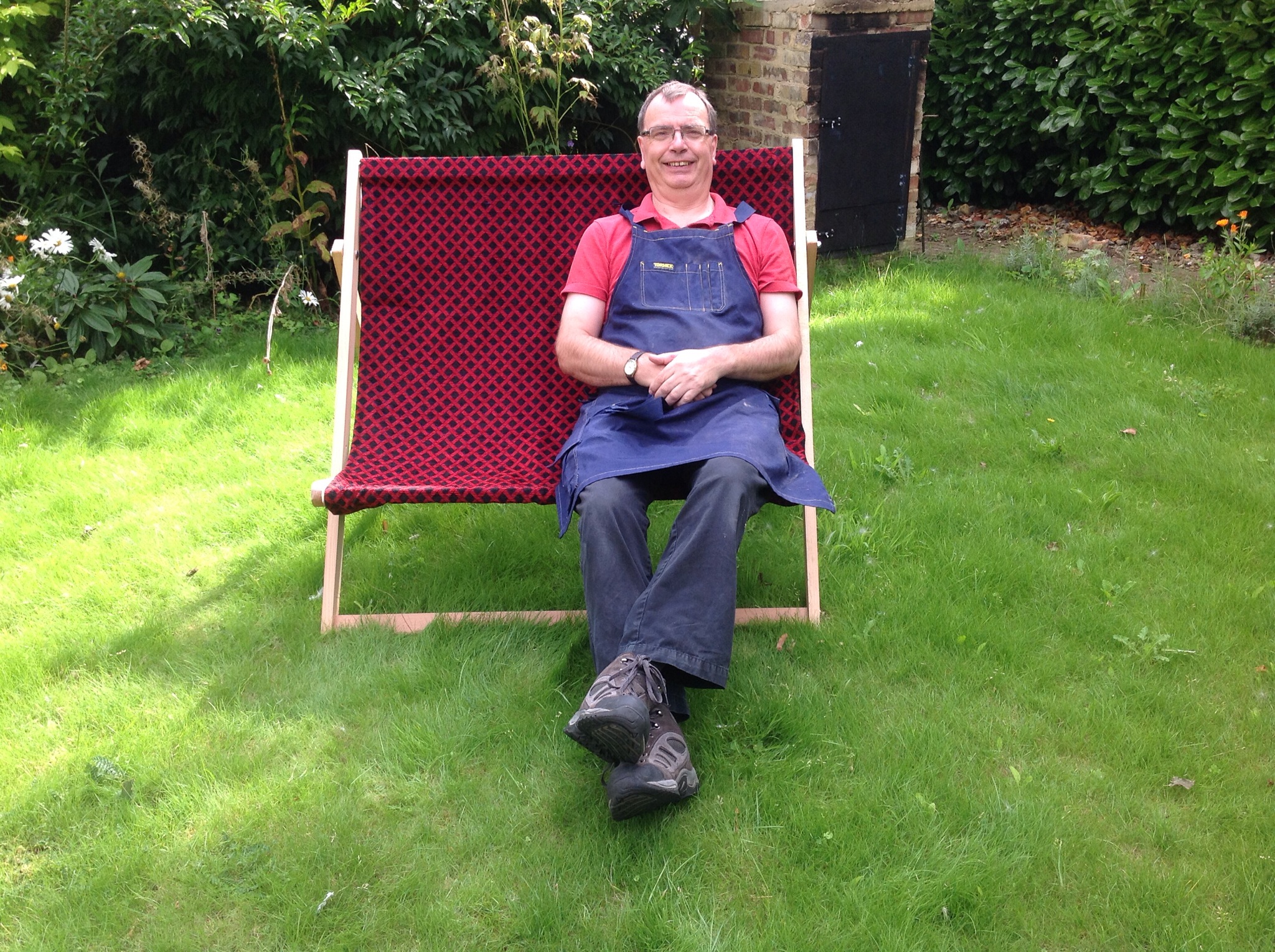 Well the weather on my holiday didnt get any better, giving me plenty of time to get on with my summer project a deckchair made for two which cost the grand total of 90p or about $1.40. If your reading this in some exotic idyll you will need a deck chair, whereas a deckchair in England at the moment can best be described as forward planning, dont be fooled by the picture it was cold and blowing a gale, the things I do for my craft.