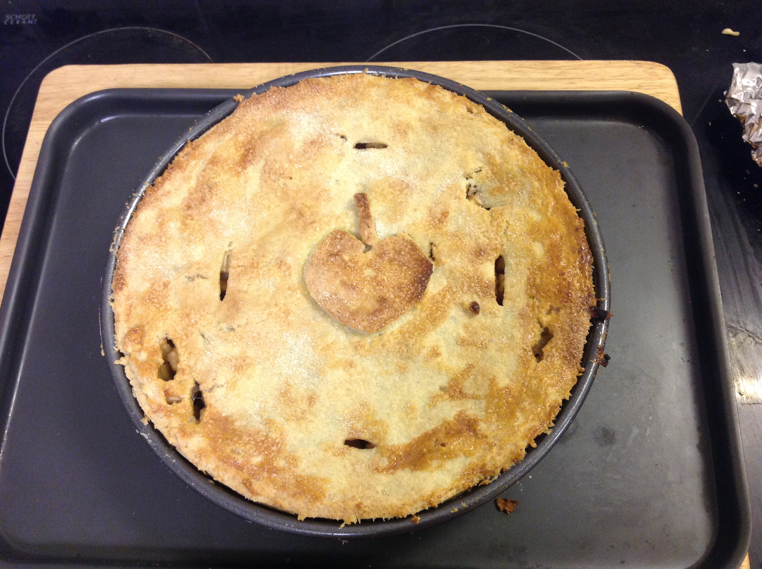 My normal method is to mix the bramley apples, with dark brown sugar, to which I add some of my home dried sultanas, and to bring it all together add some calvados, a classic pie filling. This time I was feeling adventurous and instead of putting the calvados in the filling, I used it in the pastry in place of water. The end result was a pastry, that was crisp, and packed full of flavour, and took my favourite pie a step further, and I think this is now “the recipe”.