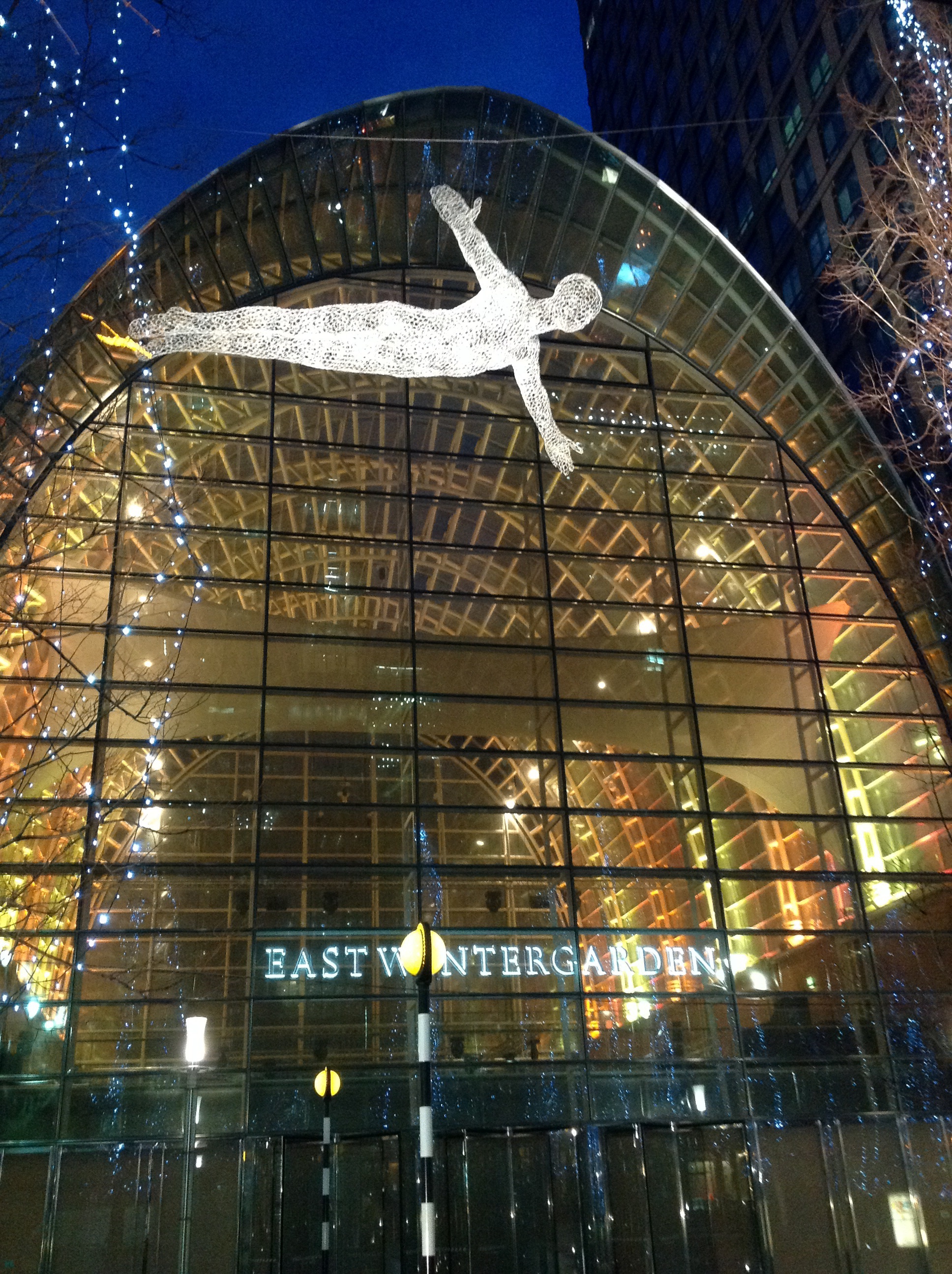 Is it a man or is it a bird? No its a flying figure created by French artist Cedric Le Borgne , one of several installed and lit by yours truly as part of the Canary wharf Winter Lights festival.