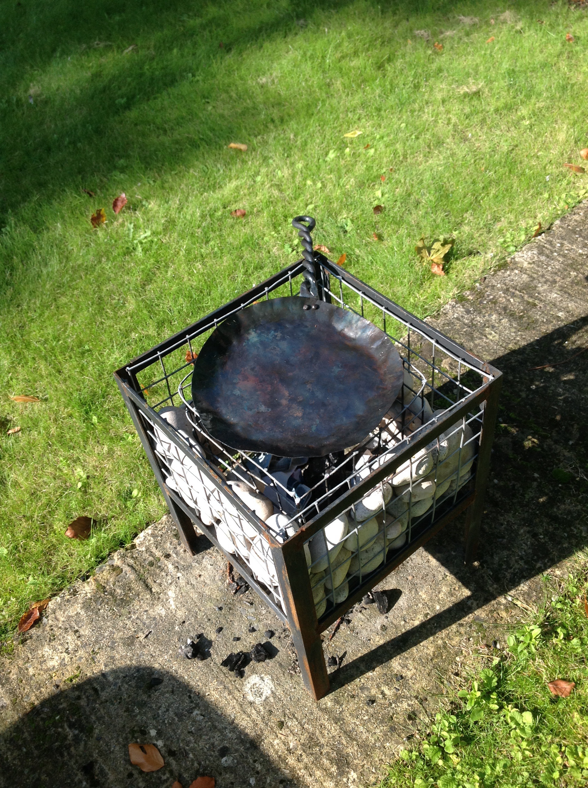 It was a quiet Sunday morning, no one wants me, and therefore I have a chance to play. Now it happens I have been watching the Hairy Bikers new series, not quite sure how I can describe them if you haven’t seen them, two middle aged bikers, who love food, with a great sense of humour, and don’t take themselves too seriously. They travel on their bikes, in this case around the Baltic states meeting people and cooking usually outside. Now it may be because I am a strange individual, or I would prefer to think an observer of minutiae, but I have been very interested by the frying pan they have been using and have been waiting for an opportunity to try and make one , and today was the day.