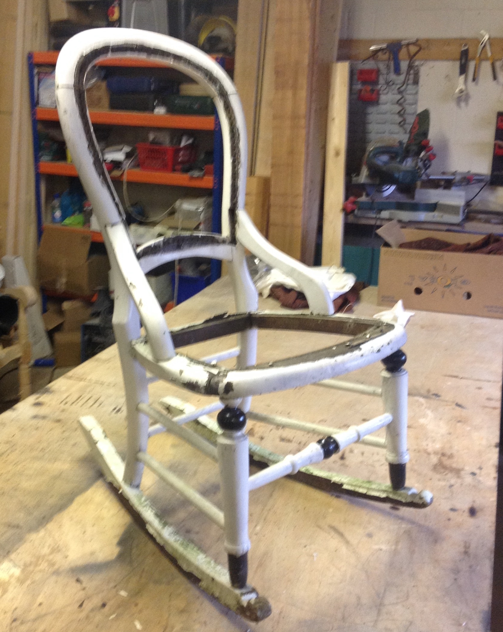 A Victorian rocking chair in need of restoration